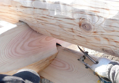そのため、一般的なサドルノッチでは、強い傾斜とほぼ水平の段が交互にくるように積む。