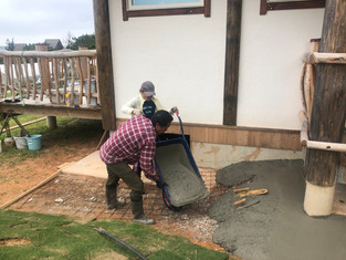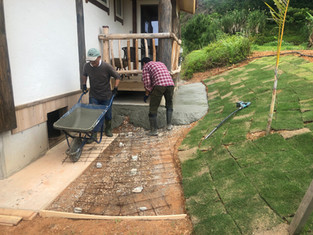 懸案事項であった、ゆくるん家裏庭(浴室よこ)と浄化槽周辺を生コン打設しました。家族3人と助っ人の友達との4人で実施。この日も人海戦術で一輪車隊と生コン平す人(ももさん)で頑張りました!