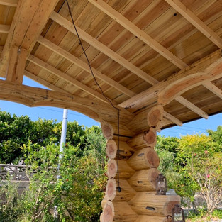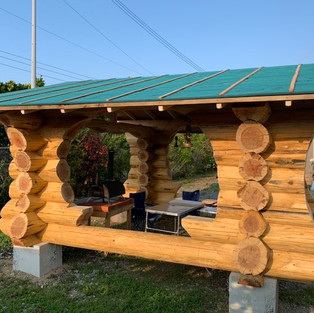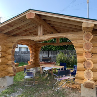 2週間前に完成した丸太のBBQ小屋!屋我地島に堂々の完成です。RCの家が多い中、突如丸太小屋が完成して近所のおばーもビックリしていました。確かに目を引く👀